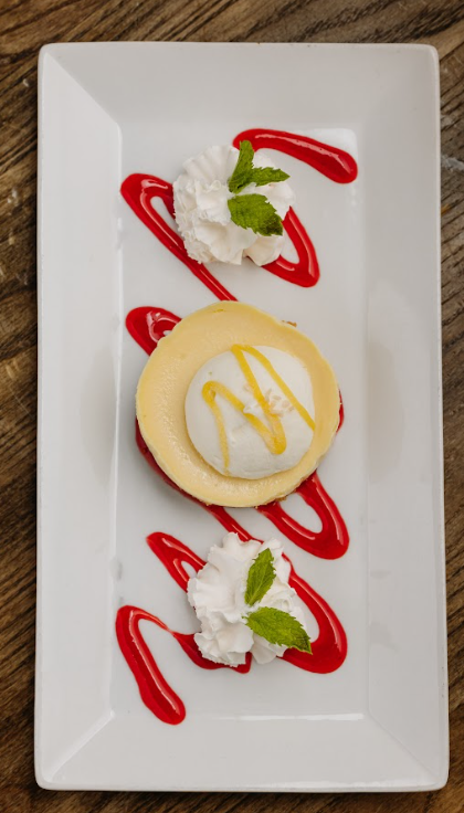 1. Drizzle raspberry syrup diagonally across a rectangular plate for presentation.